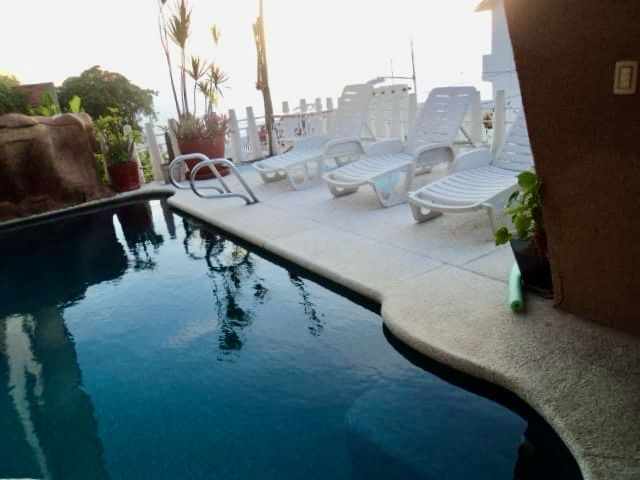 Preciosa Residencia en el Fraccionamiento Marbella, Mozimba, Acapulco de Juarez. 248 M2, 232 M2 de construcciòn, 5 recámaras – 3 en P.B., 2 en planta alta independientes, 4 1/2 Baños, Bar, jacuzzy, Vista, Alberca, Palapa, Cisterna, aires acondicionados, Seguridad, además de càmaras en el Fraccionamiento, Càmaras propias en la Residencia, 3 grandes tinacos de agua que abastecen perfectamente la propiedad, tanque de gas estacionario